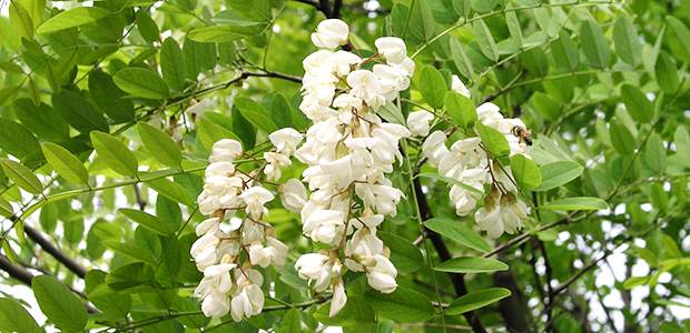 蜜源のアカシアは和名では「ハリエンジュ」または「ニセアカシア」といい、マメ科の樹木です。