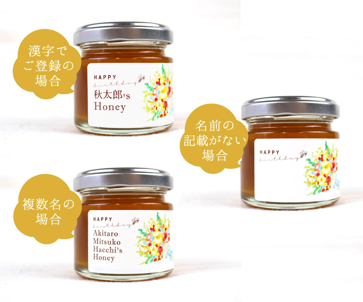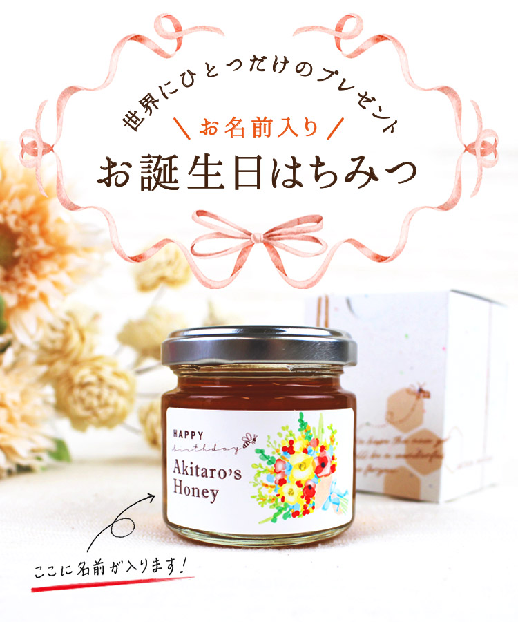 大切な方のお誕生日に想いを伝える贈り物として、世界にひとつだけのお名前入りのはちみつをおつくりします。