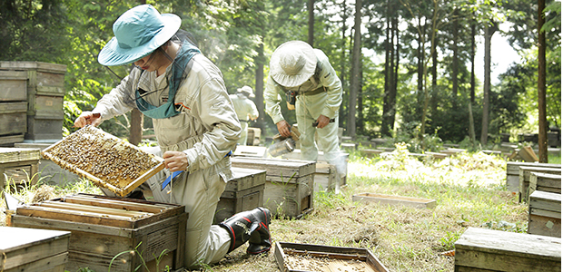 秋田屋本店では120年以上の間、養蜂資材の製造、ミツバチの育成を一貫して行うことで、ミツバチのプロとして養蜂家の方々と強い絆で結ばれてきました。