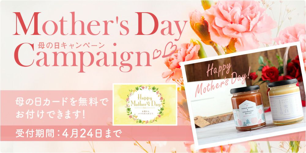 下記のキャンペーン対象商品と「母の日カード」を一緒にカートに入れてご購入いただくと、ご希望の方に「秋田屋オリジナル母の日カード」をお付けします。カードは無料となっております。母の日ギフトにぜひご利用ください。