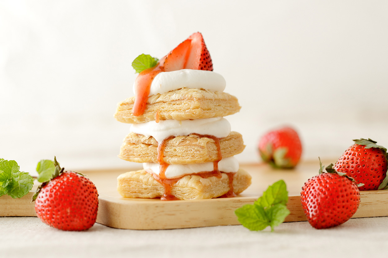 北欧はちみつシリーズは、トーストに塗ったりヨーグルトにかけたりと、まずは通常のはちみつやジャムと同じようにお使いください。 それに加えてオススメなのは、スイーツソースとしての使い道。 ソース自体に、甘酸っぱいベリーや柑橘の酸味とはちみつバターのクリーミーな甘さとコクがあるので、サクサクのパイ生地(冷凍パイシートで十分です)に塗るだけで、簡単贅沢ミルフィーユが作れます。 また、冷凍庫で凍らせるだけでも「簡単!無添加フルーツアイスクリーム」に早変わり。 ヨーグルトとブレンドして凍らせることで「フローズンヨーグルト はちみつフルーツ入り」にもなります。