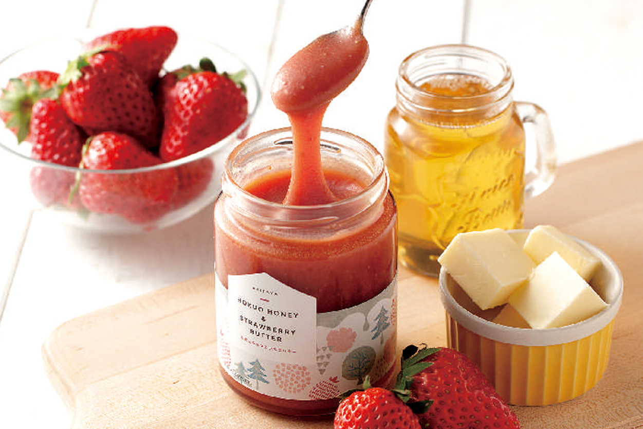 北欧はちみつはクリーミーで若干酸味のある甘さが特徴的。 なので、他の素材と組み合わせる時にも、この酸味と甘みのバランスは大切にしたい。 そんな想いでたどり着いたのが、フルーツとバター。
