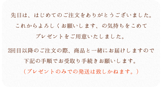 ※定期購入の2回目以降のご注文はプレゼントの対象外です。