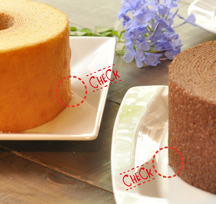 ポイントは生地の底部分を見ること。下の写真は右にあるのが通常のバウムで、